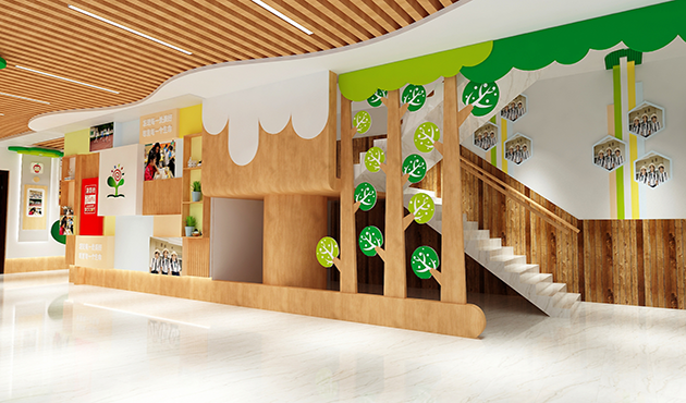 幼儿园大厅是幼儿园中的教育环境之一,也是幼儿园的一个主要的展示空间,是家长了解幼儿园教育理念的主要区域,无论是空间设计还是颜色搭配都要需要考虑的吸引家长和小朋友的问题,良好的幼儿园大厅设计能够让小朋友和家长留下好的印象。